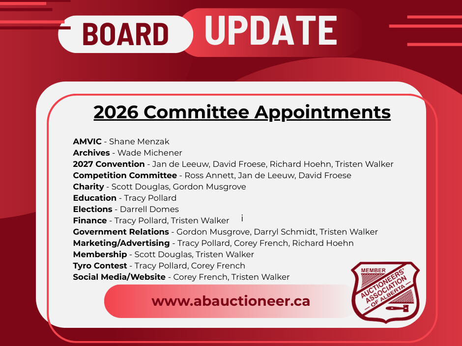 Congratulations to the 2026 Auctioneers’ Association of Alberta Board of Directors!